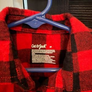 Cat & Jack Red Buffalo Plaid Flannel Shirt (3T)