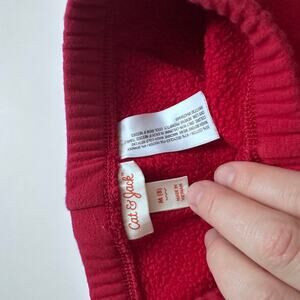 You're viewing a Cat & Jack red pants bundle in size medium (7/8). This adorable set includes two pairs of pants, perfect for your little one! One pair features a cute heart design on the knees, adding a touch of fun to any outfit. The other pair is fleece-lined, providing extra warmth and coziness during cooler days.
