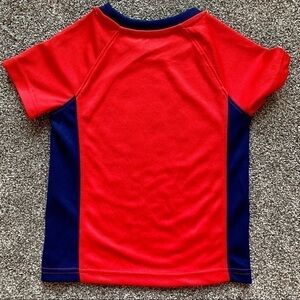 Bright red and blue tee shirt in an athletic, jersey material from Cat & Jack. Size 2T.