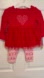 Adorable red top with heart design. Pink leggings with red heart pattern. Perfect for playful days.