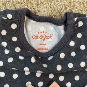 Good used condition rompers- two Cat & Jack and one Junk Food romper. All bought brand new from Target. Very minor piling on grey romper - black/polka dot romper shows signs of fading from normal wear/wash.
