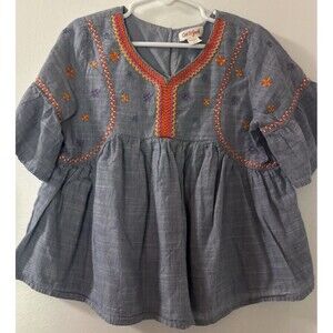 The Cat & Jack S 6-6X Blue bell sleeve girls embroidered floral boho cotton blouse is a stylish and breathable top perfect for both party and casual occasions. Featuring a floral pattern, 3/4 sleeves, V-neckline, and button closure, this blouse is made of lightweight cotton fabric with embroidered accents. The bohemian character and regular fit make it a comfortable and trendy choice for girls who love the spring, summer, or fall seasons. Made in India, this tunic-style blouse in multicolor offers a touch of peasant charm to any outfit. Beautiful Floral embroidery. Length from shoulder to hem 17 Arm to armpits 14 Sleeves 8. Such a lovely Tunic/ Dress. Thank you for looking!