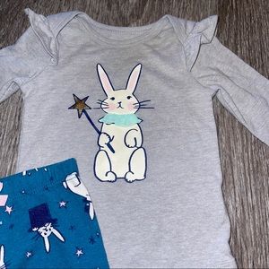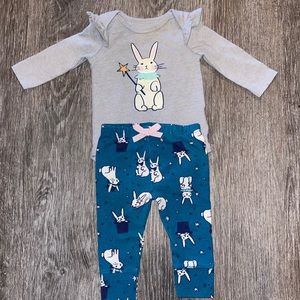 Teal leggings with bunnies