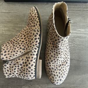 Cat & Jack Shoes Girls Size 4 Brown Black Cheetah Print Ankle Booties Zip Casual