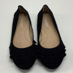 Cat & Jack Size 1 Black Girls Flats. Ruffle Design on Front (Preloved)