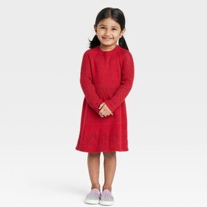 Cat & Jack Sweater Dress Red Lurex open stitch dress fit n flare Toddler 4T