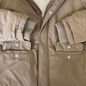 Kids youth size XL 14/16 tan khaki long winter parka by Cat & Jack in like new condition. Heavy winter coat with removable faux fur trimmed hood and Sherpa lined interior. Exterior snap closure pockets, interior Velcro pocket, and fitted sleeve cuffs. Double zippered opening and snap flap to keep cold out. Treated water resistant exterior. Worn once and no flaws except for a pen mark on interior of jacket.