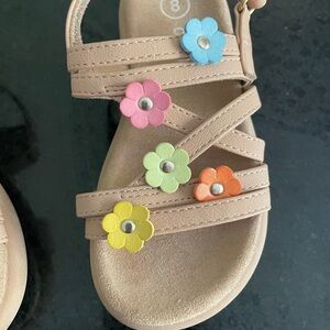 Cat & Jack Tan Kids Sandals with Colorful Flowers