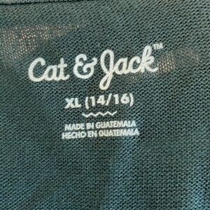 Cat & Jack Teal Star Graphic Knit Sweater size XL (14/16) Recycled Materials. New with tag! Cute lightweight sweater. Elastic cuffs. Multicolored Star with silver polka dots on it. Sleeves have cute detail at shoulderish area. See pictures for measurements. Newer style 2021.