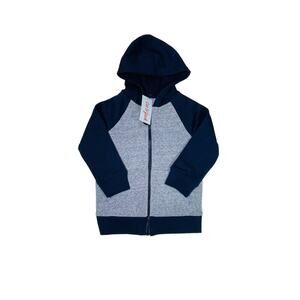 Keep your little one cozy and stylish with this Cat & Jack toddler boys full-zip hoodie jacket, brand new with tags. Featuring a navy blue body with contrasting charcoal gray sleeves and hood, this jacket offers warmth, comfort, and everyday versatility. The soft cotton-blend fabric makes it perfect for layering on cooler days.