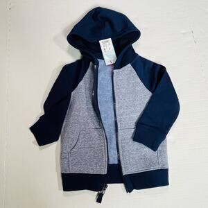 Cat & Jack Toddler Boys Full Zip Hoodie Jacket Size 2T Navy Blue Gray Hood NWT