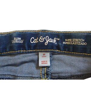 Cat & Jack Toddler Boys Slim Super Stretch Denim Jeans 2T Blue Cotton Blend. NWT