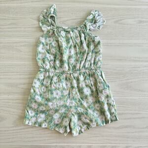 Cat & Jack Toddler Girl Green White Flowers Pocket Romper Size 4T