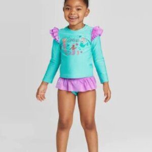 Cat & Jack Toddler Girl Mermaid Long Sleeve Rash Guard Swim Set 2T