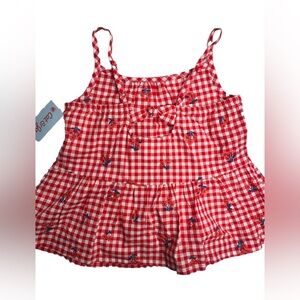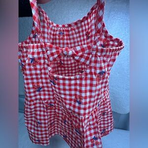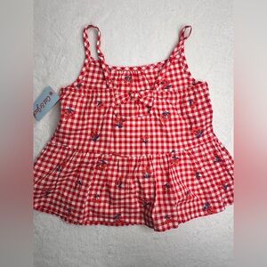 Cat & Jack Toddler Girls Pleated Embroidered Flowers 4th Of July Red Gingham