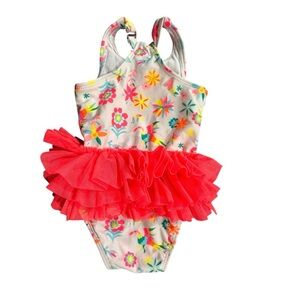 Cat & Jack Toddler Girls' Shapes One Piece Swimsuit, White Multicolor 12 Months