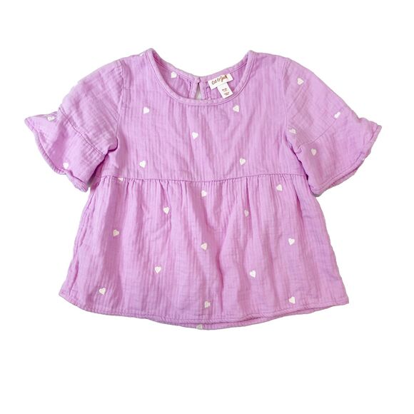 Cat & Jack Top Girls M (8) Purple Embroidered Hearts Gauzy Ruffle Sleeve Cotton