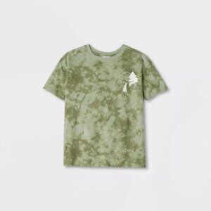 Cat & Jack Unisex Kids Size Small Army Green Tie Dye Tree Hug Graphic Tshirt 463