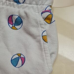 Cream white shorts with colorful beach ball design. Perfect for play and comfort. UNISEX