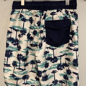 Cat & Jack boys swim shorts navy/aqua/white palm tree novelty print with back pocket