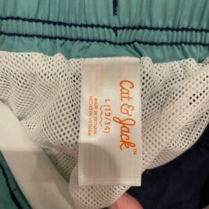 Cat & Jack boys swim shorts L 12/14 navy/aqua/white palm tree novelty pr…