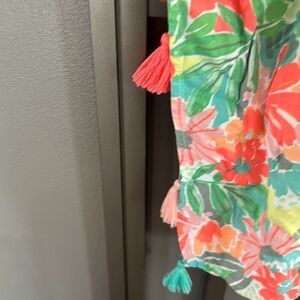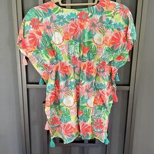 Cat & Jack bright floral peach orange green bathing suit cover up tassel top siz