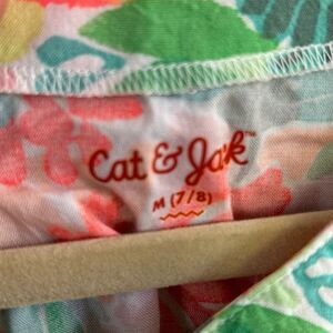 Cat & Jack bright floral peach orange green bathing suit cover up tassel top size M kids girls seven