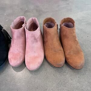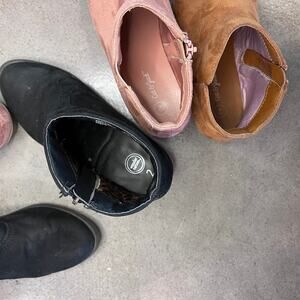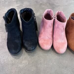 Cat & Jack brown pink Wonder Nation black suede boots bundle youth girls size 2, ankle bootie zip up 3 pair bundle, fall boots