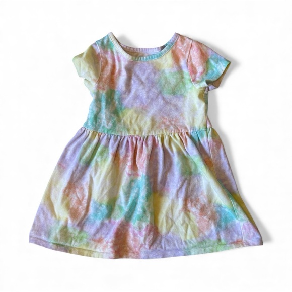 This is a Cat & Jack short sleeve knit dress in a pastel tie-dye print.