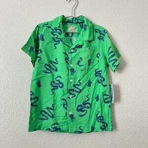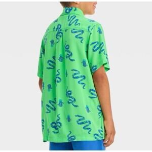 Cat & Jack snake cactus print button up collared shirt short sleeve green blue, Size XS (4/5). New with tag. First 3 photos are stock photos to show fit and detail only.