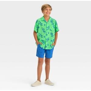 Cat & Jack snake cactus print button up collared shirt short sleeve green blue