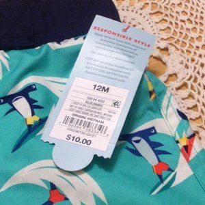 NWT pair of swimming trunks for age 12 month. Sharks on front, mesh lined. I think one of those is supposed to be a hammerhead shark. May be other types of fish too. Cute trunks.