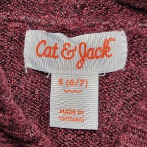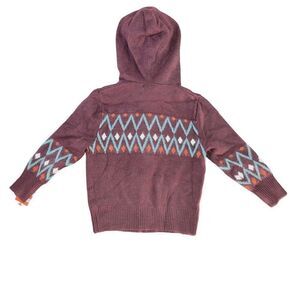 Cat & Jack Burgundy Fair Isle Hooded Full-Zip Cardigan Sweater Sz S