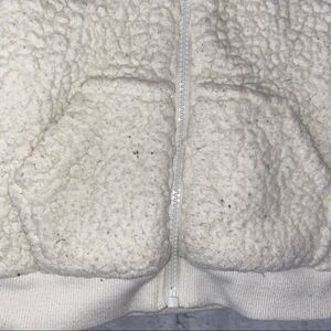 Some staining on coat as shown in picture and outer fur isn’t as fluffy but overall has a lot of life left in it! And super cute!