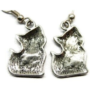 Cat Kitten Heart Love Silver Tone Vertical Drop Dangle Hook Earrings Womans