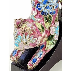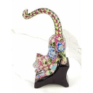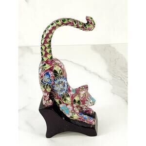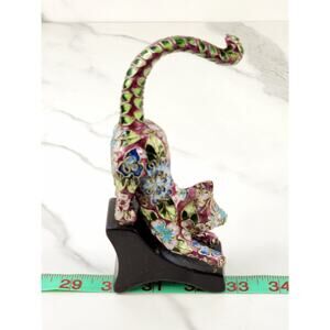 Cat Kitten Lovers 6" x 2 1/4" Ceramic Pink Multicolor Wood Base Home Decor