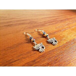 Cat Kitty Earrings Silver Retro Style Crystal AB Dangle Drop New