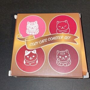Cat Lady Box Felt Cat Coasters x 4 with Holder. New in box. See pictures