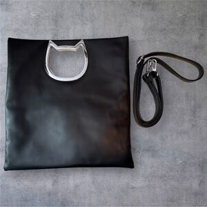 Cat Lady Box Sleek Black and Silver Shoulder Bag with Modern Design NWOT