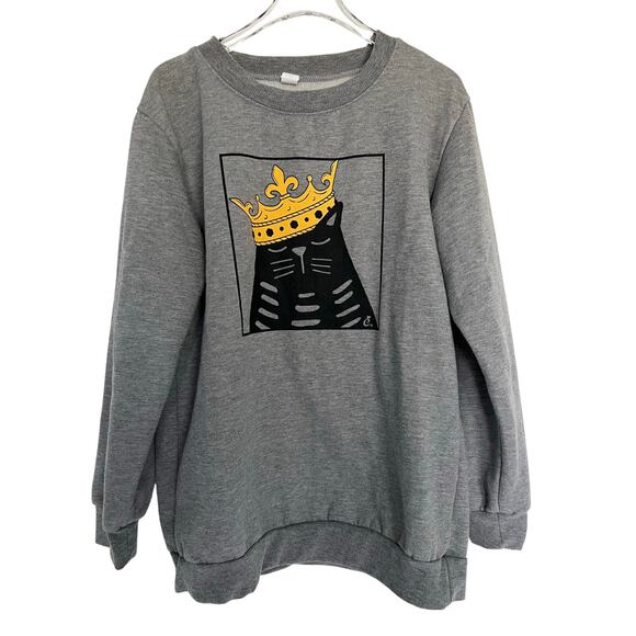Cat Lady Heather Gray “Royal Cat” Graphic Sweatshirt Small
