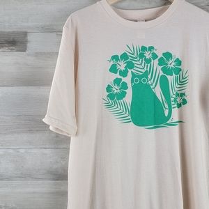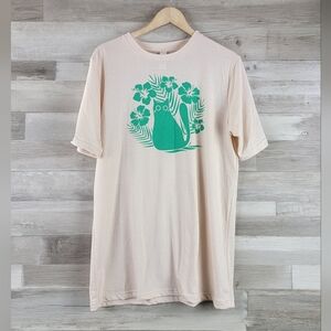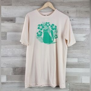 Cat Lady Tropicat Tee Shirt Soft Peachy Tan Women's Size Large