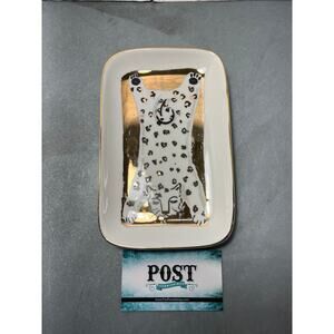 Made out of ceramic material, gold underlay, gold trim, with a leopard cat design, great for jewelry, trinkets etc, it is 7” long, 5” wide