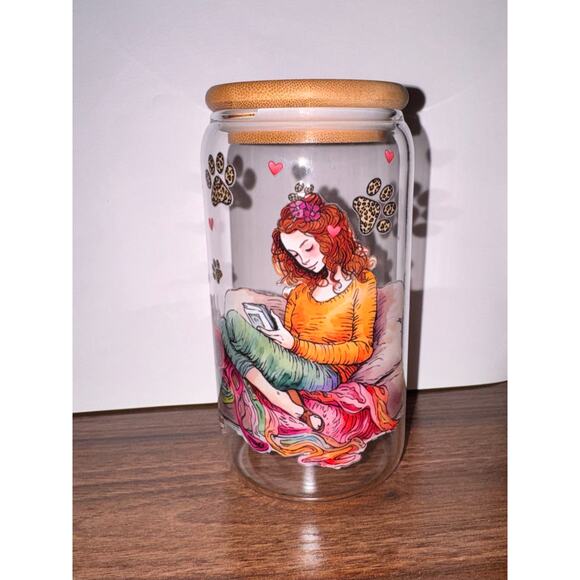 Newly made 16oz Cat Lover glass tumbler cup with lid. Comes with glass straw and straw cleaner. Hand wash only