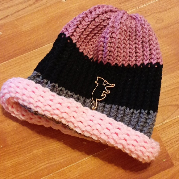 Cat Lovers Knit Hat beanie Fall season Pink Black Gray adult sz with hair clip