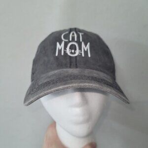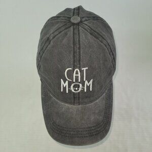 Cat Mom Hat Cap Womens Grey Distressed Adjustable Strapback Cotton Ballcap