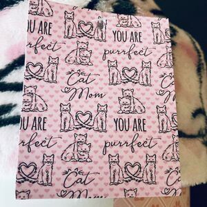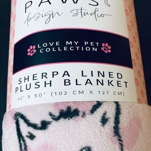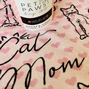 NWT adorable cat print “Cat Mom / You Are Purrfect” hearts print Sherpa lined plush super soft and cozy reversible pink and gray pet throw blanket. 40”x50”. Great gift for a cat lover!