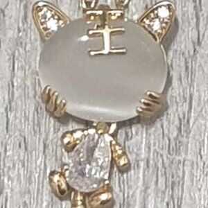 Cat pendant /necklace in white tiger eye white stone and cubic zircon in stainless steel metal to give you this delicate unique design cat accessory for your everyday use .Perfect gift for all cat lovers .leave me a comment if you have a question