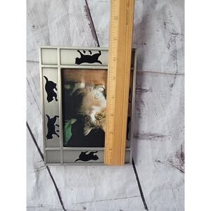 Cat Picture Frame Pewter Carr Black Velour Cutout Edge 3.5” x 5” Photo Vintage