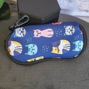 Cat Print Blue Zipper Pouch Eyeglasses Case