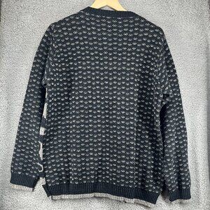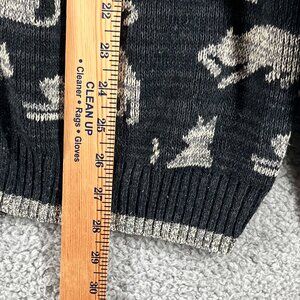 Cat Print Knit Cardigan Sweater Size XL Green 3 Made in USA Recycled Cotton